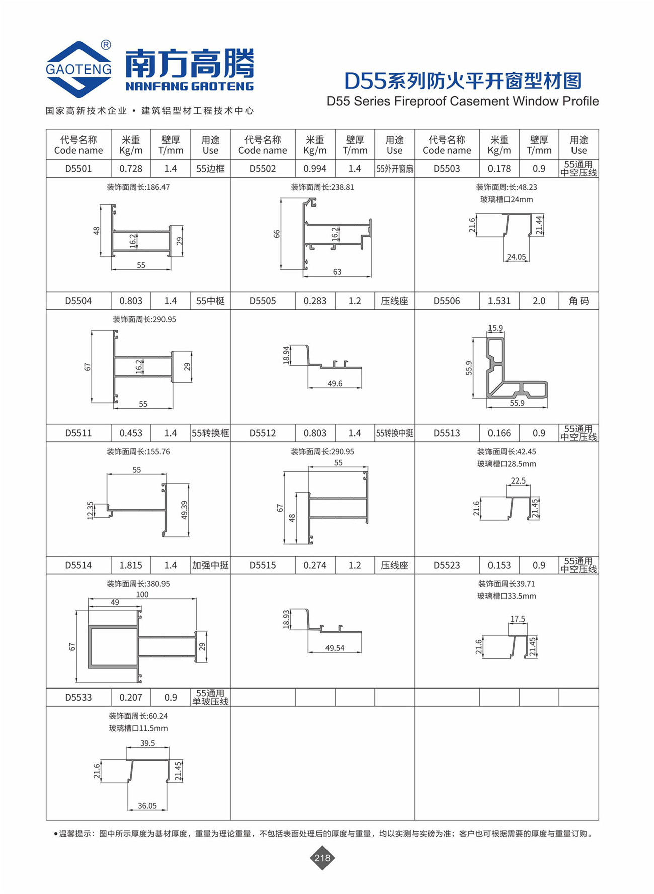 D55 series fireproof casement window