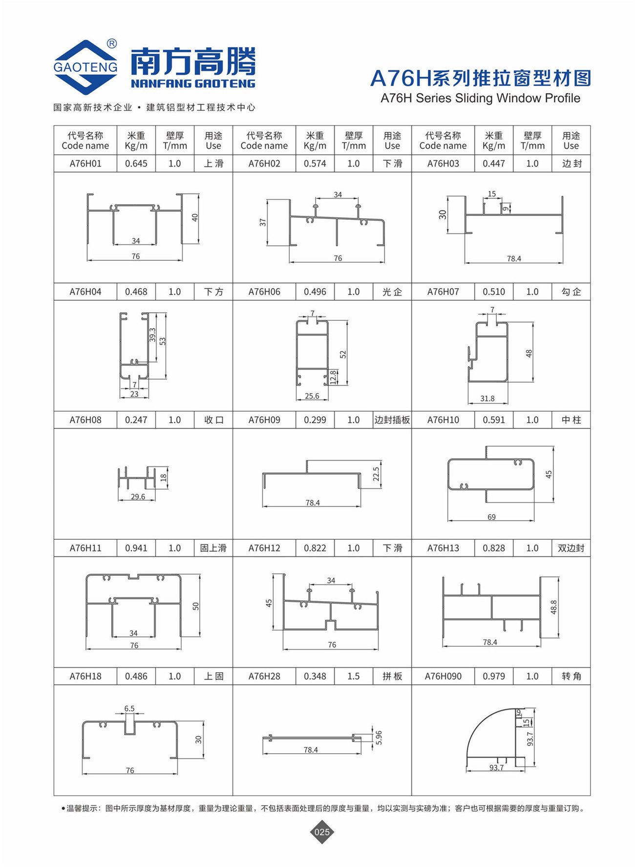 A76H series sliding window